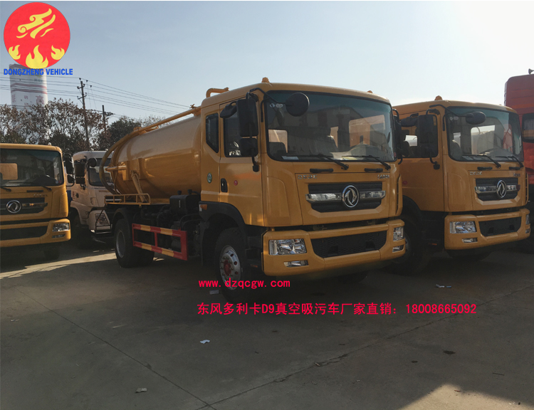 8臺東風多利卡D9新款真空吸污車出廠,該批D9真空吸污車,采用東風D9新款駕駛室,4500mm軸距,康明斯180馬力,罐體容積為9.8立方。配備億豐雙聯(lián)真空泵,帶油水分離器,四通閥,洗手裝置,罐體后封頭球閥控制自流口1個,1個視污窗,1根7m吸糞管,舉升式罐體,罐體兩側(cè)油缸,后蓋液壓開啟,機械鎖緊,帶液位報警?蛇x裝承重報警器,進口刮片威龍泵,雙聯(lián)泵,加裝灑水裝置。