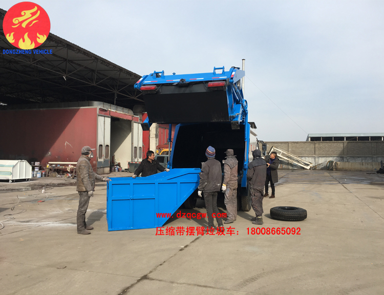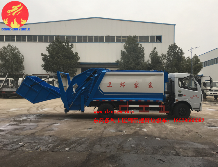 國五東風多利卡D7壓縮帶擺臂式垃圾車出廠,該車整車型號為SZD5110ZYS5型壓縮式垃圾車,采用東風多利卡D7國五底盤,3800mm軸距,玉柴150馬力發(fā)動機,鋼絲胎帶ABS。壓縮垃圾箱體為8個方,后裝置為擺臂式帶斗?蓮V泛用于城鎮(zhèn)生活垃圾的收集。