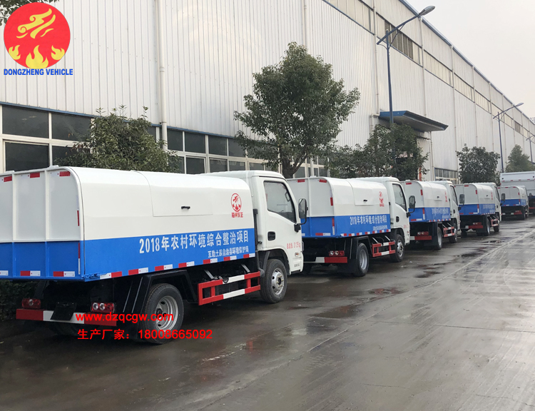 此批自卸式垃圾車采用躍進(jìn)小卡國五單橋底盤,2650mm軸距,柳州五菱87馬力汽油發(fā)動機(jī)。箱體采用邊3底4,雙頂,箱體側(cè)門可打開,后卸。上藍(lán)牌,適合農(nóng)村、街道、小區(qū)垃圾收集與轉(zhuǎn)運。