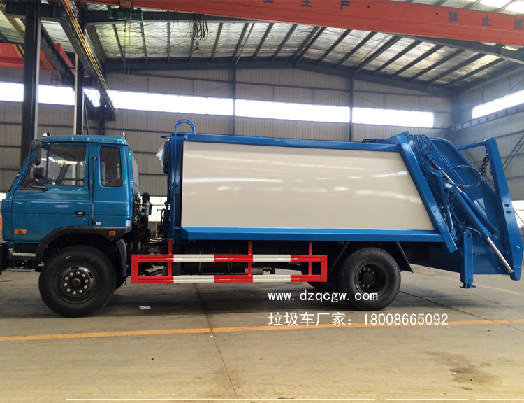 底盤說明:東風(fēng)153豪華內(nèi)飾,3950與4500mm軸距,寬體保險(xiǎn)杠,電動(dòng)玻璃,法斯特小八檔變速箱,玉柴或康機(jī)發(fā)動(dòng)機(jī),300雙層大梁(局部三層),前橋5噸,后橋10噸,加厚鋼板9.00-20,動(dòng)力轉(zhuǎn)向,斷氣剎。軸距/整車長對應(yīng)關(guān)系為(mm):3950/7750,4500/8600. 上裝說明: 廂體材料為武鋼優(yōu)質(zhì)炭鋼,厚度為邊5mm,廂體容積為10-12立方米。由裝料機(jī)構(gòu)、壓縮機(jī)構(gòu)、卸料機(jī)構(gòu)、油泵、油箱、控制閥等組成的液壓機(jī)構(gòu)組成。裝料機(jī)構(gòu)由支架、連桿機(jī)構(gòu)、凸輪、掛鉤等組成,在油缸作用下,將垃圾桶內(nèi)的垃圾自動(dòng)翻轉(zhuǎn)倒入料斗內(nèi)。新款有9支液壓缸制動(dòng),不帶副壓板,液壓控制操作系統(tǒng)為電動(dòng)控制和手動(dòng)控制。 后翻轉(zhuǎn)機(jī)構(gòu)選裝:1、掛桶翻轉(zhuǎn)機(jī)構(gòu)(可選帶鐵桶或塑料桶),手動(dòng)及電控操作 2、簸箕斗翻轉(zhuǎn)機(jī)構(gòu) 3、擺臂式翻轉(zhuǎn)機(jī)構(gòu). |