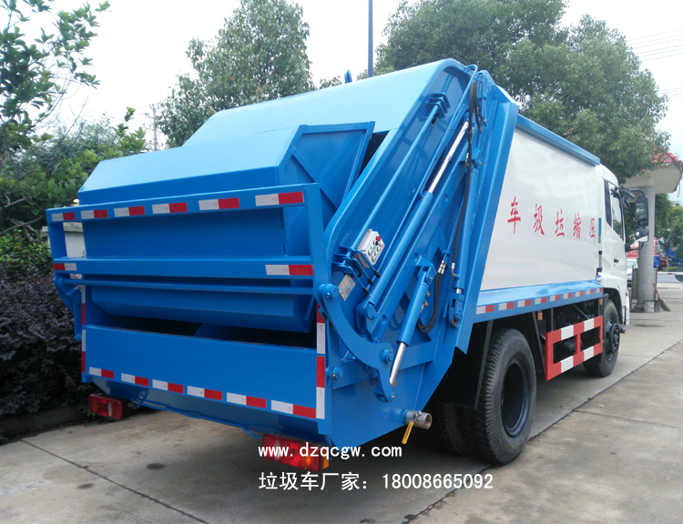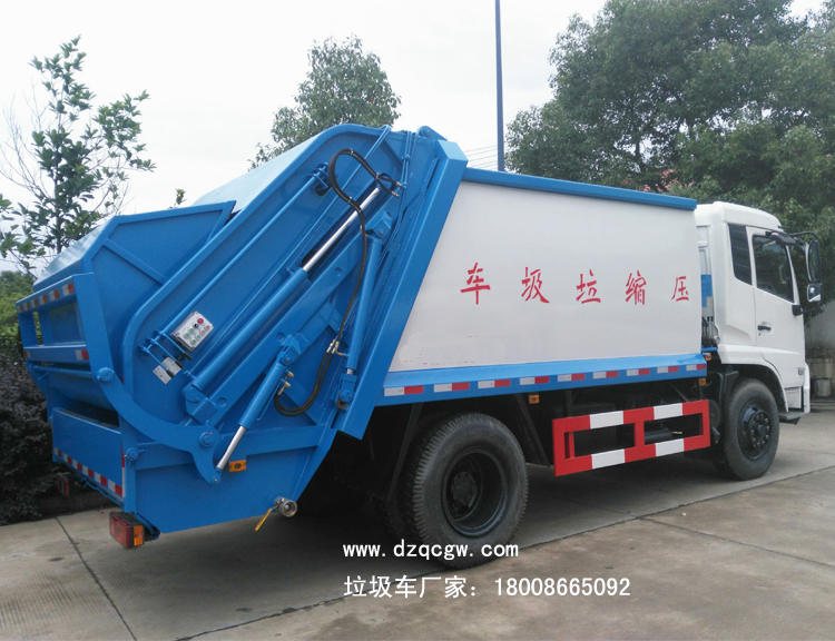 底盤說明:東風(fēng)天錦平頭一排半平標(biāo)頂駕駛室,康機(jī)或東風(fēng)180馬力發(fā)動機(jī),4.5T前橋,9噸后橋,東風(fēng)6檔變速箱,9.00R20鋼絲胎,帶空調(diào),ABS。 上裝說明: 廂體材料為武鋼優(yōu)質(zhì)炭鋼,厚度為邊5mm,廂體容積為8立方米。由裝料機(jī)構(gòu)、壓縮機(jī)構(gòu)、卸料機(jī)構(gòu)、油泵、油箱、控制閥等組成的液壓機(jī)構(gòu)組成。裝料機(jī)構(gòu)由支架、連桿機(jī)構(gòu)、凸輪、掛鉤等組成,在油缸作用下,將垃圾桶內(nèi)的垃圾自動翻轉(zhuǎn)倒入料斗內(nèi)。新款有9支液壓缸制動,不帶副壓板,液壓控制操作系統(tǒng)為電動控制和手動控制。 后翻轉(zhuǎn)機(jī)構(gòu)選裝:1、掛桶翻轉(zhuǎn)機(jī)構(gòu)(可選帶鐵桶或塑料桶),手動及電控操作 2、簸箕斗翻轉(zhuǎn)機(jī)構(gòu) 3、擺臂式翻轉(zhuǎn)機(jī)構(gòu) |