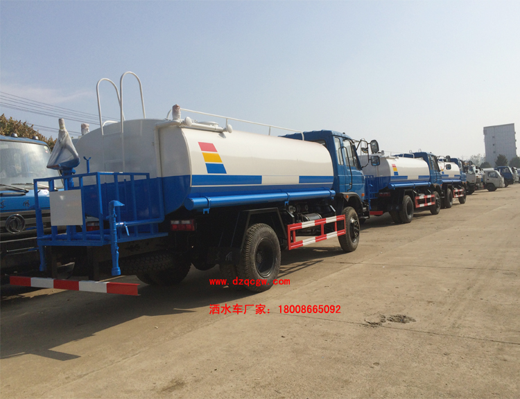 改裝部分:標(biāo)配前沖、后灑、側(cè)噴、工作平臺(tái)、綠化高炮、自流閥、消防接口,輸水管3米2根,8噸以上罐體帶高位花灑2個(gè),億豐泵或金龍泵,控制方式為手動(dòng)。選裝氣動(dòng)閥門控制;高位花灑,大鴨嘴,藥盤,罐體側(cè)面加裝萬(wàn)向可調(diào)節(jié)噴頭,罐體后部壓塵噴灑裝置,兩個(gè)圓警燈或長(zhǎng)警燈,LED箭頭燈,泵可選裝威龍泵或農(nóng)藥噴霧裝置。