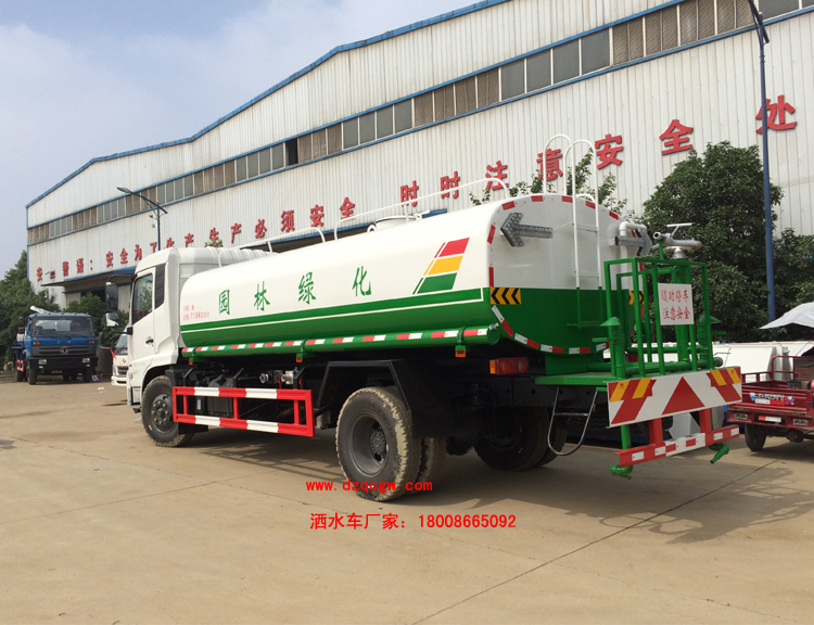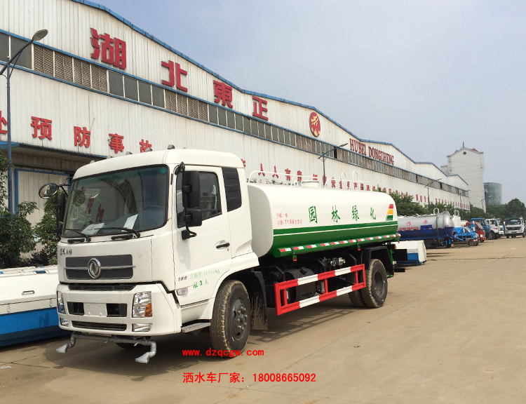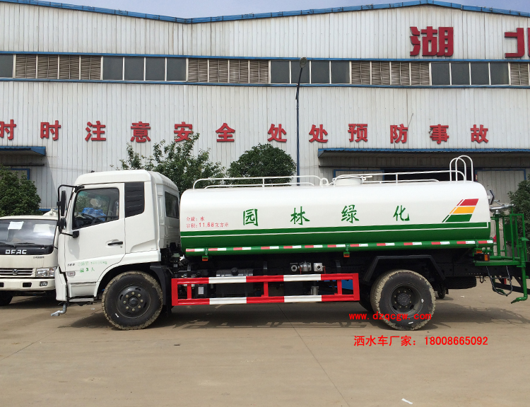 底盤說明:東風天錦平頭一排半平標頂駕駛室,軸距4500,4200mm,國四康明斯發(fā)動機,4.5T前橋,9噸后橋,東風6檔變速箱,9.00R20鋼絲胎,帶空調,ABS。罐體有效容積:10立方米。運輸介質:水。帶免征。 專用功能:該多功能灑水車適合于各種路面的灑水、噴霧、降溫、除塵、沖洗塵埃臟物,亦可用于園林綠化、市政環(huán)衛(wèi)、路面養(yǎng)護及應急消防、運輸飲用水等。專用部分由罐體、水泵、球閥、輸水管道、灑水裝置等部件組成。水泵、取力箱、球閥均為國家定型產品,具有性能良好,工作可靠、壓力高、流量大、油耗低等特點。 改裝部分:標配前沖、后灑、側噴、工作平臺、綠化高炮、自流閥、消防接口,輸水管3米2根,8噸以上罐體帶高位花灑2個,億豐泵或金龍泵,控制方式為手動。選裝氣動閥門控制;高位花灑,大鴨嘴,藥盤,罐體側面加裝萬向可調節(jié)噴頭,罐體后部壓塵噴灑裝置,兩個圓警燈或長警燈,LED箭頭燈,泵可選裝威龍泵或農藥噴霧裝置。 |