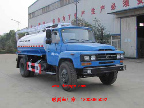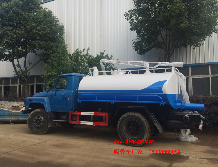 底盤說明:東風(fēng)尖頭140底盤,軸距3950mm,YC6J160-46或YC4E140-42發(fā)動(dòng)機(jī),五檔變速箱,2.8t前橋/8t后橋,9.00尼龍?zhí)ィ嚰?32mm。罐體有效容積:6.5立方。 專用部分:標(biāo)配取力器、隨州真空吸糞泵(8mm以上建議加裝雙聯(lián)真空泵)、油水分離器、四通閥、洗手裝置、罐體后封頭閘閥控制自流口1個(gè)、糞罐、帶視糞窗1個(gè)、1根6米吸糞管、普通油漆。 吸糞管 : 可360度旋轉(zhuǎn),抽滿糞罐時(shí)間:≤5min,吸程:≥6m。自吸自排,壽命長,工作速度快,容量大,運(yùn)輸方便,適用于收集運(yùn)輸糞便、泥漿、原油等液體物質(zhì)。P.S.可根據(jù)客戶要求加裝灑水功能,水罐糞罐獨(dú)立分倉,即可吸糞又可灑水,一車兩用。加裝水箱或工具箱,加裝液位報(bào)警裝置。 |